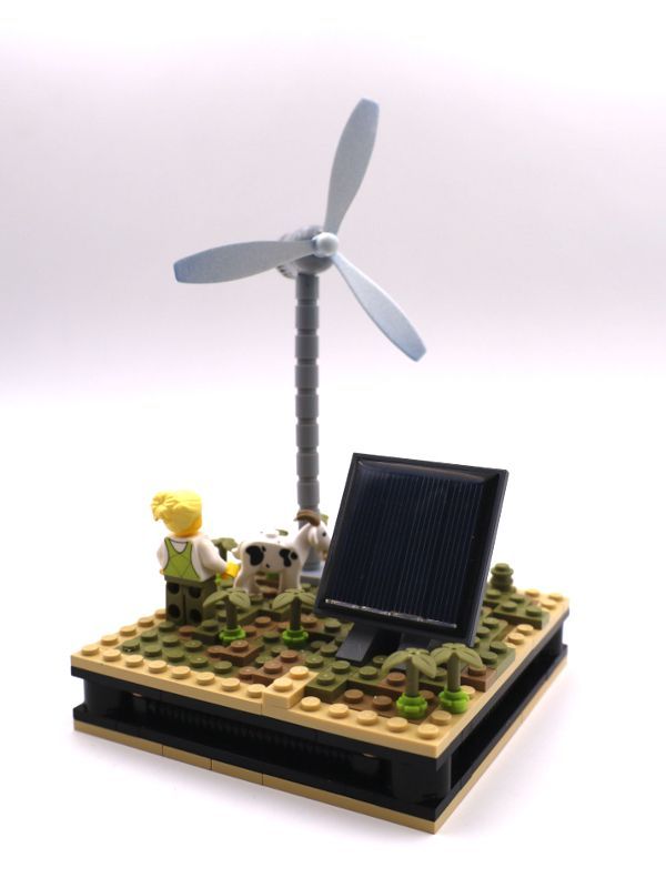 Solarstrom ist in aller Munde, nun ziehen sie auch in die Welt der bunten Steine ein. Echte Solarzellen ermöglichen den Bau von Modellen mit Bewegung oder ermöglichen die Beleuchtung kleiner Modelle bei Nacht durch gespeicherten Strom der durch Solarzellen erzeugt wurde.
